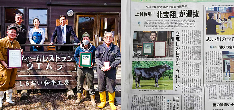 和牛王国ウエムラの黒毛和牛が表彰いただきました和牛王国ウエムラの黒毛和牛が表彰いただきました。一般社団法人ジェネティクス北海道から「極めて優れた種雄牛」と認定され表彰されました! 和牛王国ウエムラが追い求めてきた「まっすぐな旨さ」が認められたこと、そしてなにより皆様からご支持・ご愛顧いただいたおかげです。 これからもまっすぐな旨さ、そして感動をお届けするために、丁寧に、誠実に、和牛王国ウエムラだからこそできる和牛を追い求めていきます。 |